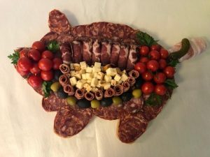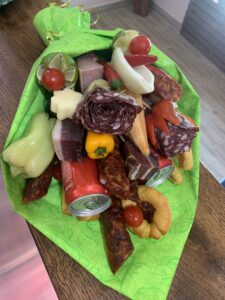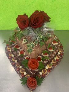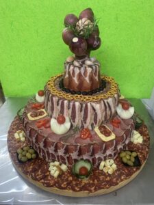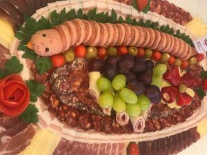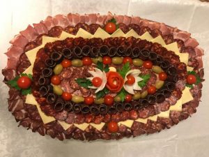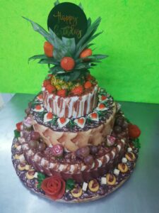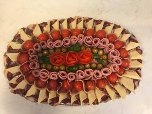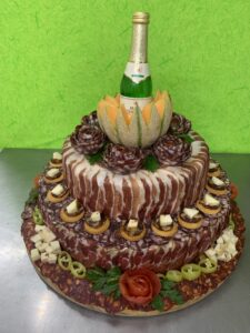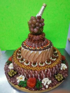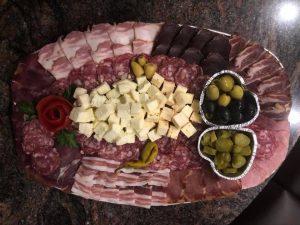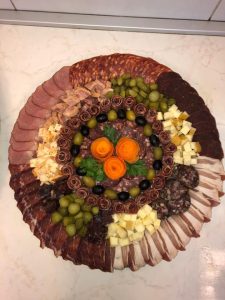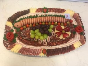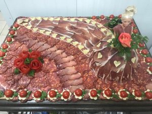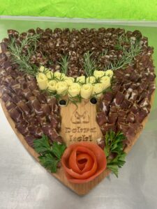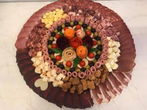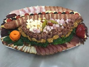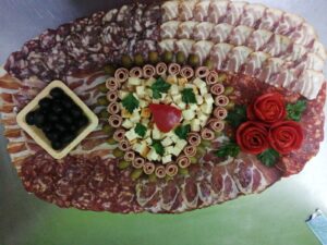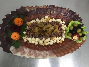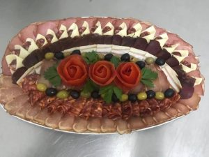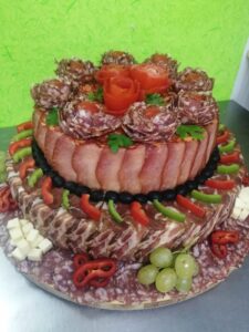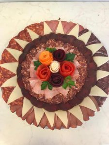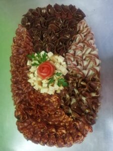 Mesne plate radimo od naših narezaka iz asortimana polutrajnih, trajnih i suhomesnatih proizvoda. Osim mesnih delicija plate se upotpunjuju raznim sirevima te povrćem i/ili voćem kao dekoracijama. Masline, kiseli krastavci, rajčice, paprika, francuska salata ali i grožđe, jabuke ili drugo voće ne samo da će ukrasiti platu nego će i upotpuniti punoću okusa. Mesne plate možete naručiti za razne prigode, od dječjih proslava, domjenaka u vašem poduzeću, proslava rođendana ali i za svadbene svečanosti. A posebnu pozornost na svakom svečarskom stolu plijenit će slana torta, dekoracija narezaka od suhomesnatih proizvoda u obliku torte.
